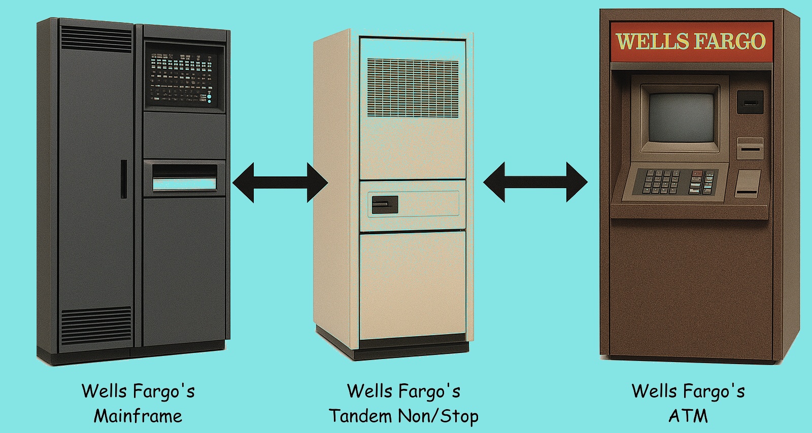 So, as you can see from the above graphic, the Tandem stood between the ATM and the bank's mainframe.