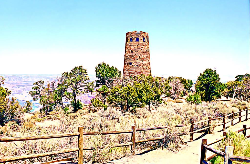The adobe or brick tower located on the South Rim of the Grand Canyon